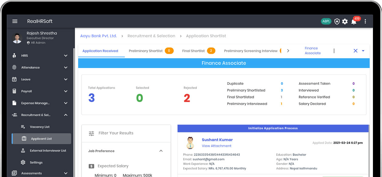 Automating internal and external recruitment processes, including recruitment, shortlisting, scheduling interviews, and recording details for future reference.